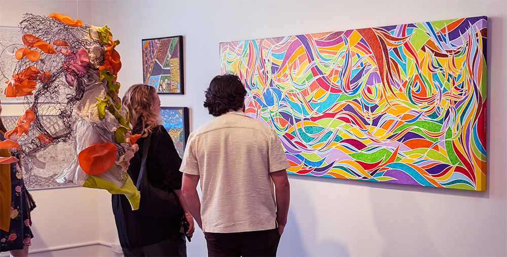 Second image: Lighter Than Air | 34" x 84" | acrylic on canvas | on display at Danforth Museum's annual juried exhibition